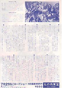 「これは72年リバイバル時のチラシだ」との説があるが、当時から映画館を巡ってチラシ集めをしている人に聞いても、この初版柄がリバイバル時に映画館にて配布されていたという事実は確認されていないのだ。